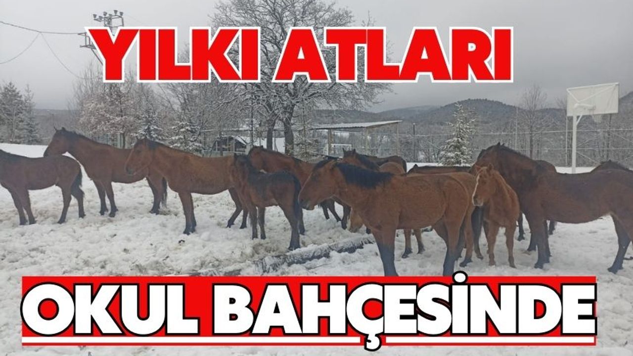 Görüntülerde, yılkı atlarının okul bahçesinde ve çevresinde bir süre dolaştığı görüldü. Yılkı atlarının kış aylarında beslenme ve hava koşulları nedeniyle yerleşim alanlarına yaklaşabildiği biliniyor.
