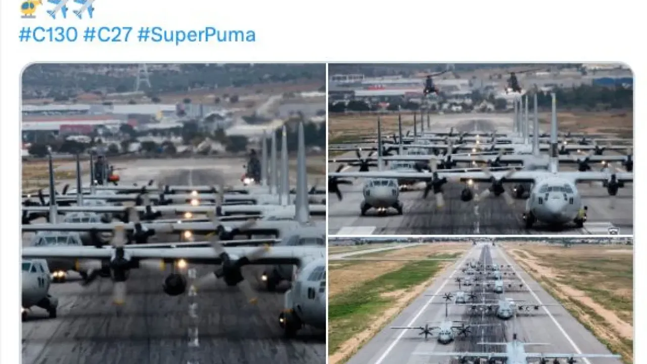 Resmi hesaptan yapılan paylaşımda, C-130 filosunun görsellerine yer verilerek, “Günün Fotoğrafları! #C130 #C27 #SuperPuma” notu düşüldü.